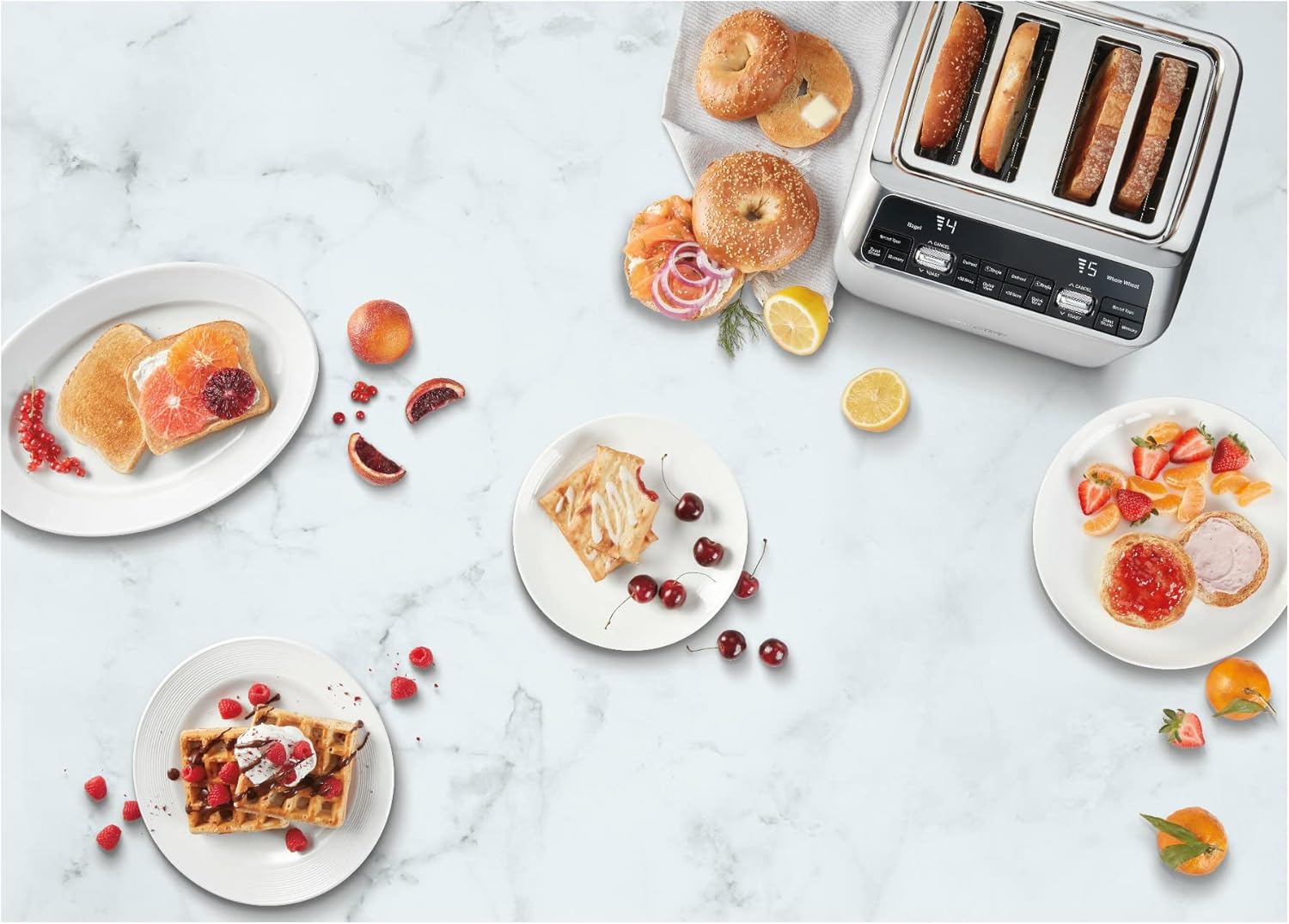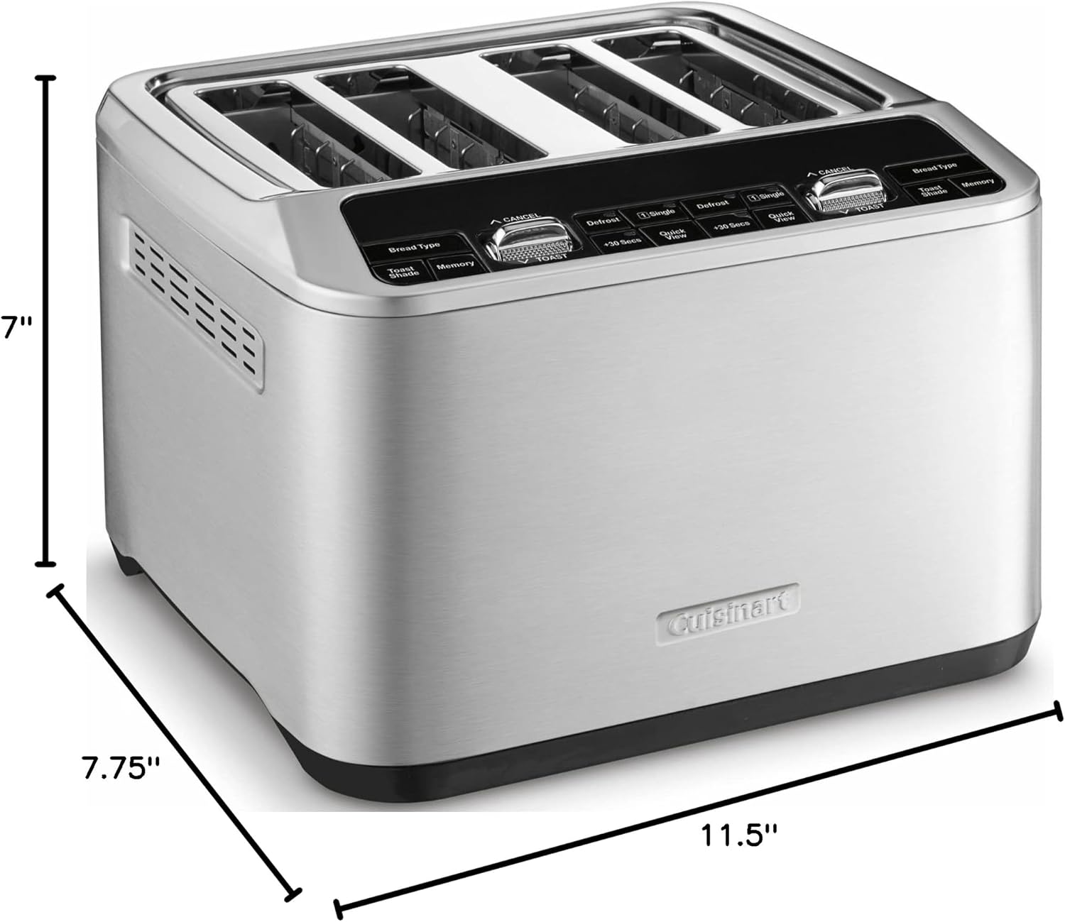 Equipped with dual control panels, the CPT-540 allows you to customize each pair of slots independently, perfect for accommodating different preferences in your household. The extra-wide slots can fit a variety of bread sizes, from thin slices to thick artisanal loaves.