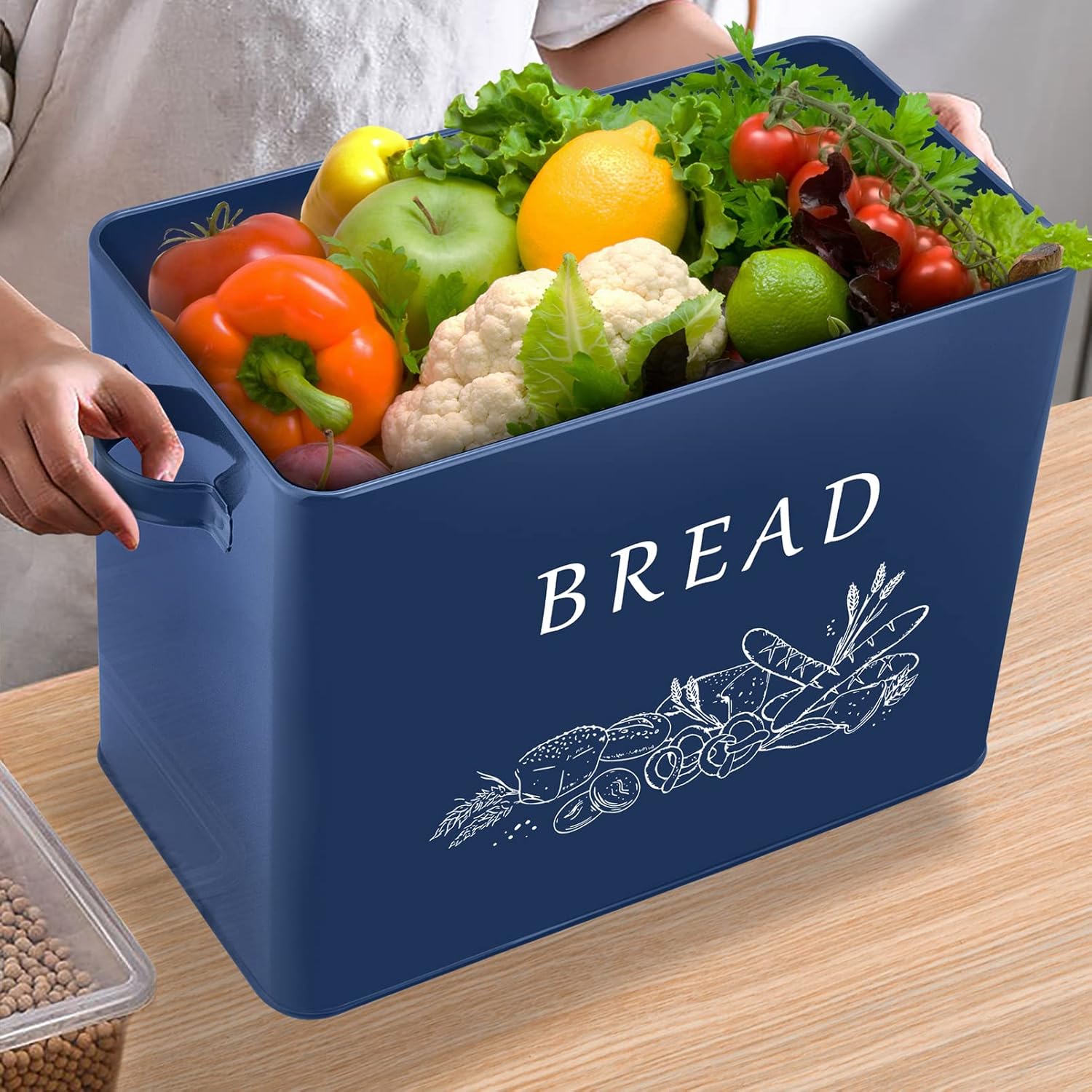 Crafted with durable metal and a charming wooden lid, this bread container is designed to elevate the aesthetic of your kitchen while providing ample storage space. Measuring 13.1” in length, 7.2” in width, and 9.7” in height, it offers a large capacity to accommodate your favorite bread loaves, buns, pastries, and more.